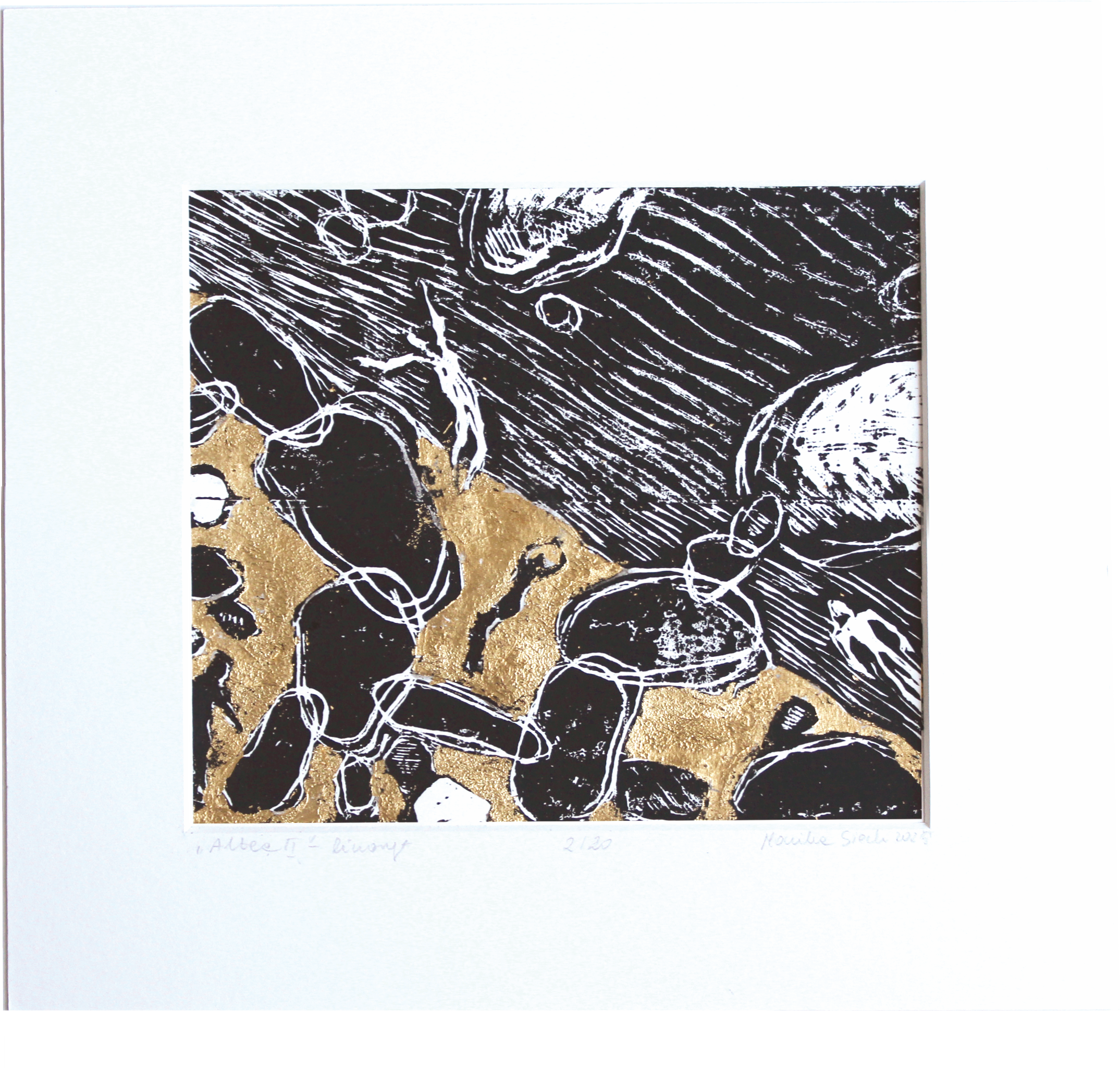 Linoryt wciąga... gdzieś głęboko, a z każdym pociągnięciem dłuta odkrywam i wydobywam z materii, to co zostało ukryte i zapomniane. A kiedy przenoszę wycięty wzór z matrycy na papier dzieje się "magia" - chwila prawdy, w której odsłania się ostateczny obraz.